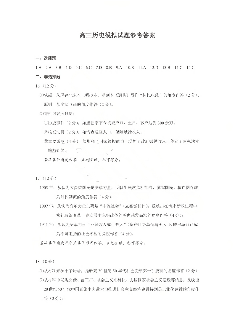 济宁市2026年高考模拟考试 历史答案.pdf
