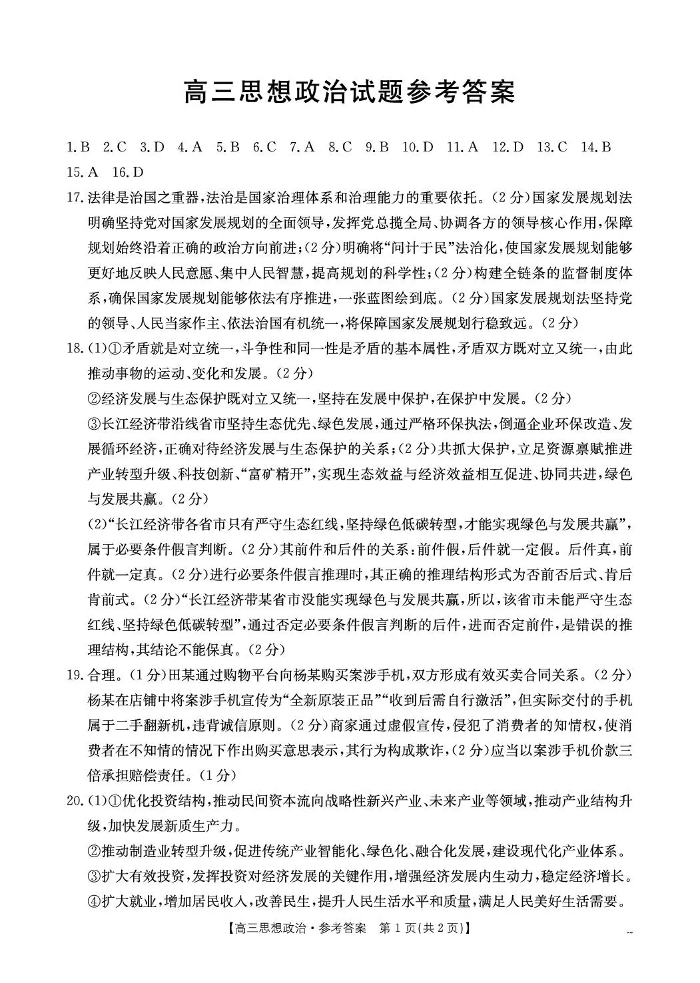 随州市2026届高三下学期4月三模考试 政治答案.pdf