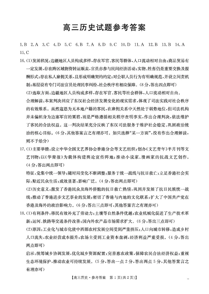 随州市2026届高三下学期4月三模考试 历史答案.pdf