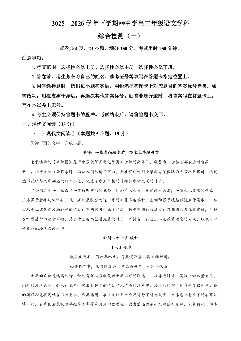 江西省赣州市四校2025-2026学年高二下学期综合检测联考(一)语文.docx