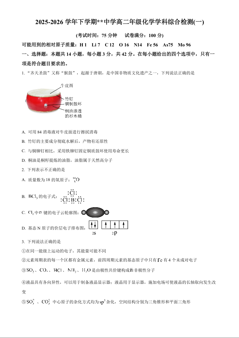江西省赣州市四校2025-2026学年高二下学期综合检测联考(一)化学.docx