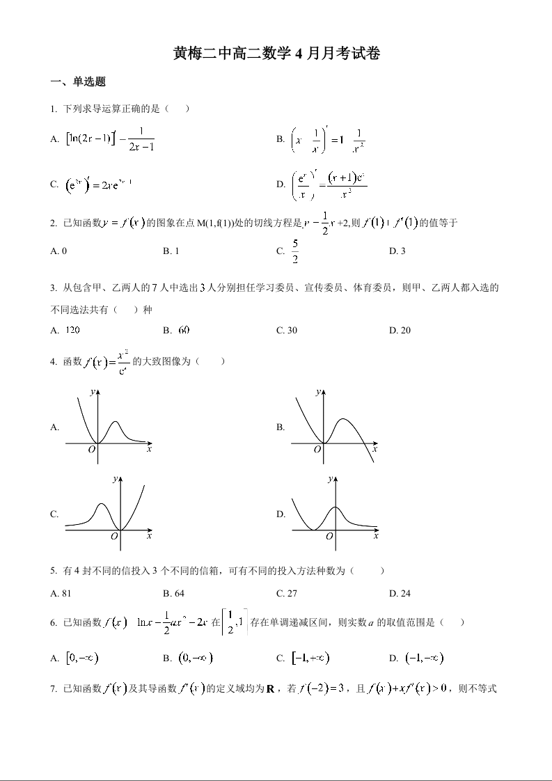 湖北省黄冈市重点校2025-2026学年高二下学期4月月考 数学.docx