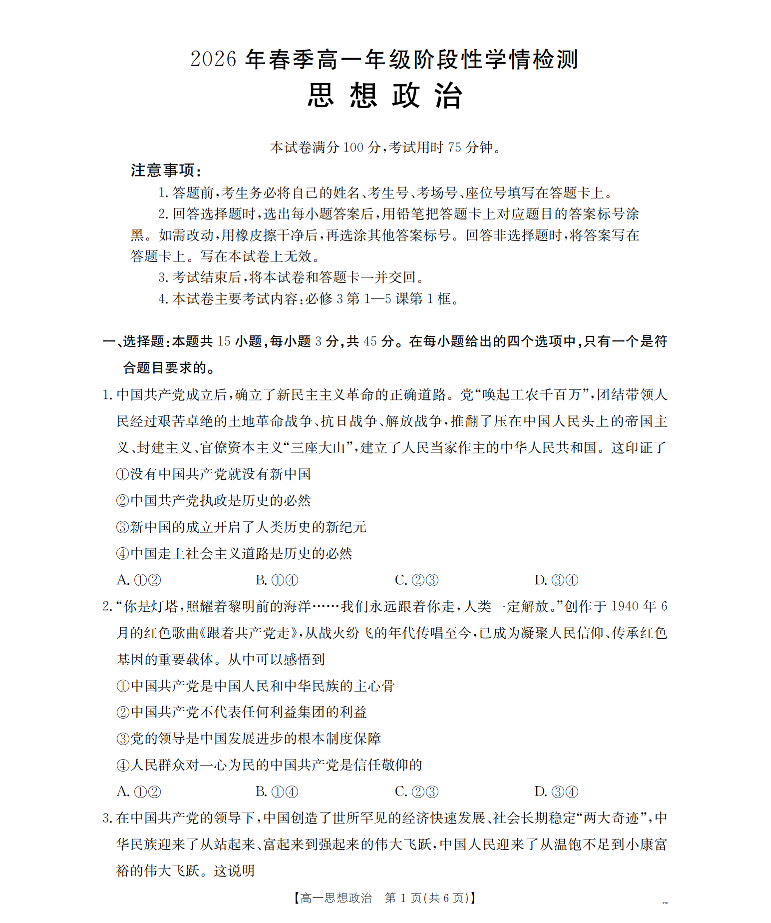 河南省南阳市南阳区域2026年春季高一年级阶段性学情检测 政治.pdf