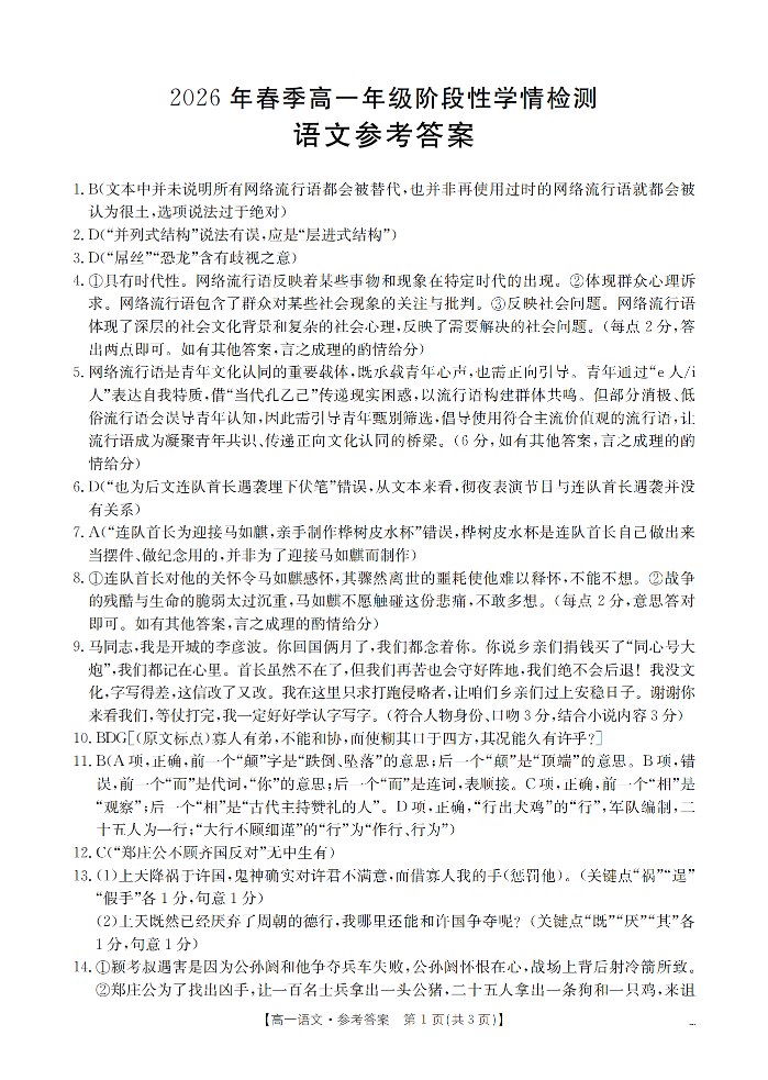 河南省南阳市南阳区域2026年春季高一年级阶段性学情检测 语文答案.pdf