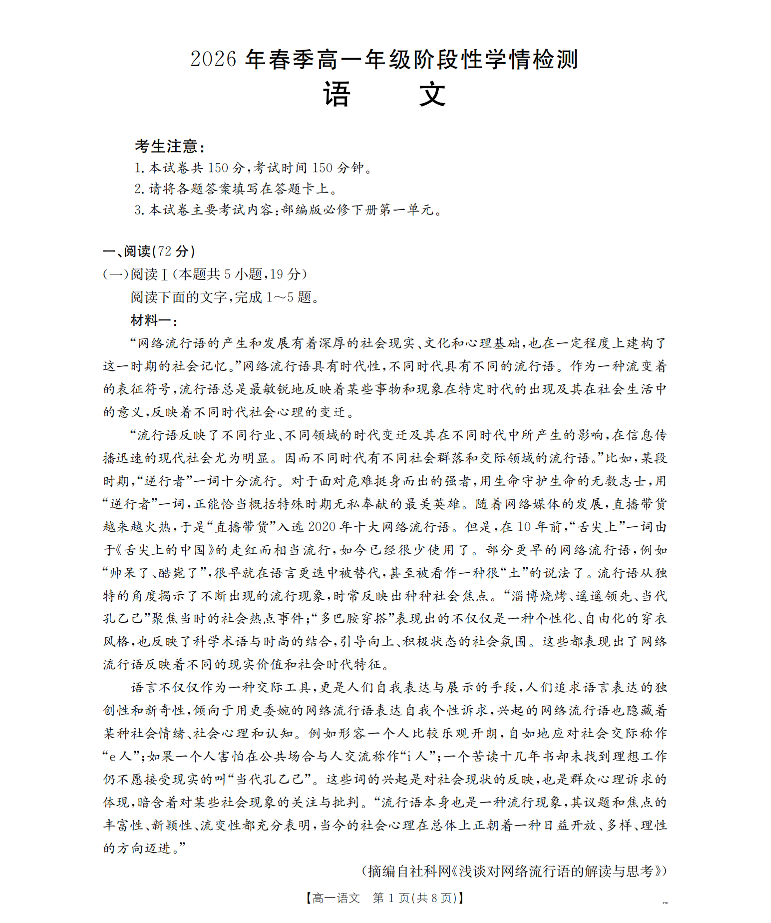 河南省南阳市南阳区域2026年春季高一年级阶段性学情检测 语文.pdf