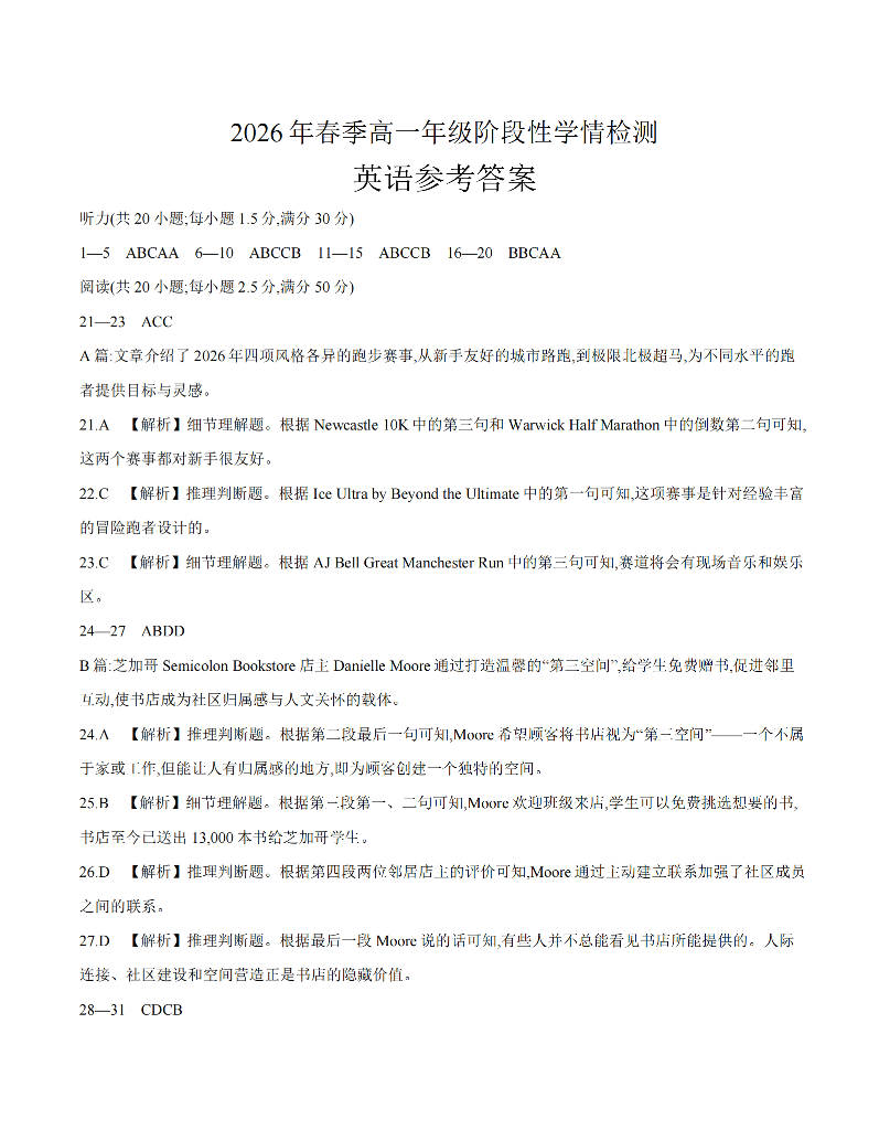 河南省南阳市南阳区域2026年春季高一年级阶段性学情检测 英语答案.pdf