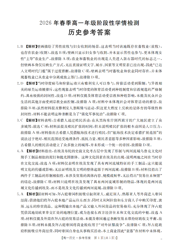 河南省南阳市南阳区域2026年春季高一年级阶段性学情检测 历史答案.pdf