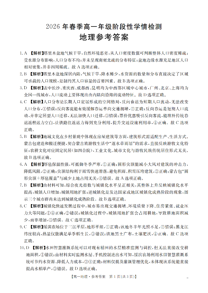 河南省南阳市南阳区域2026年春季高一年级阶段性学情检测 地理答案.pdf