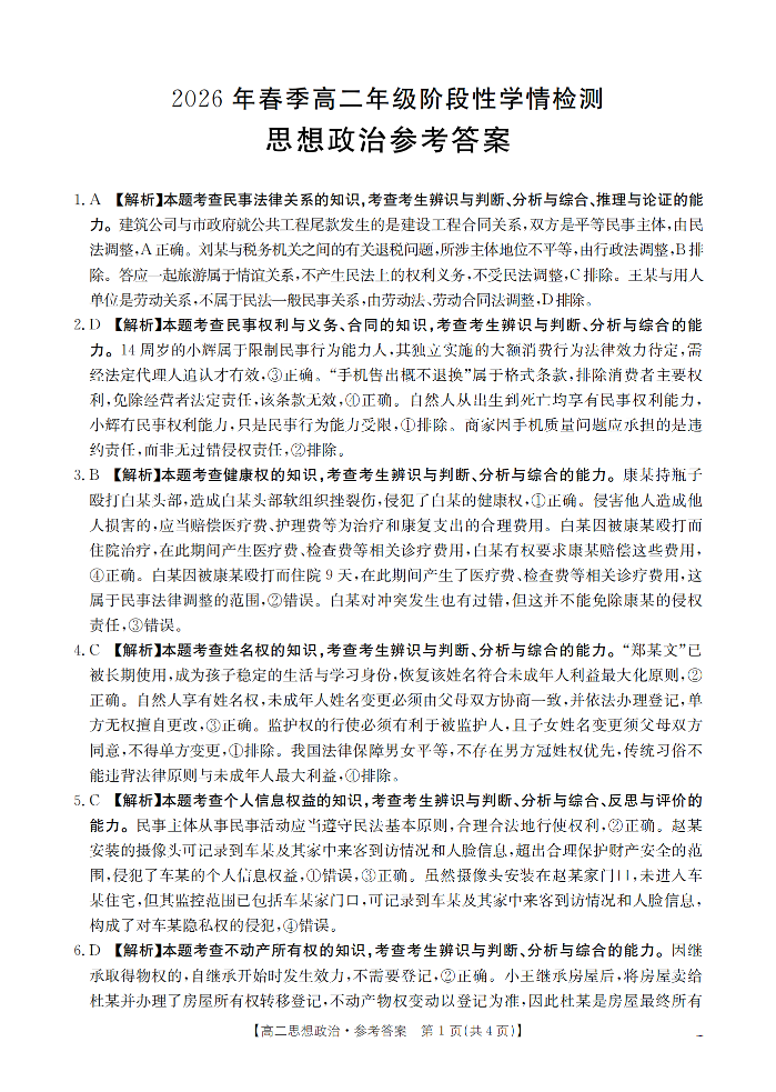河南省南阳市南阳区域2026年春季高二年级阶段性学情检测 政治答案.pdf