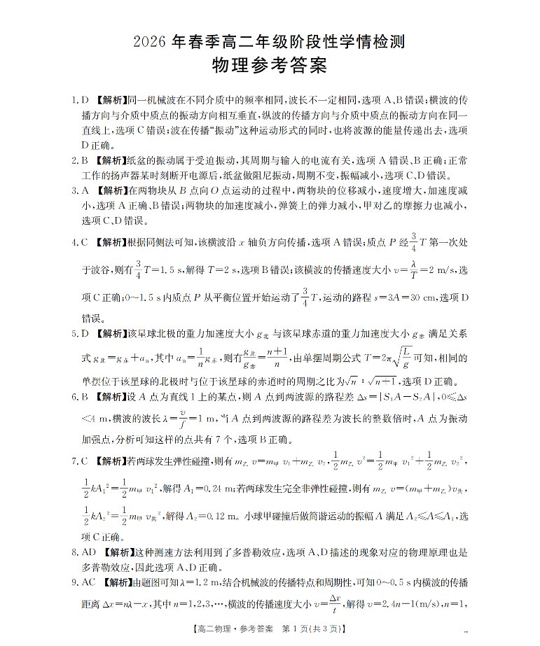 河南省南阳市南阳区域2026年春季高二年级阶段性学情检测 物理答案.pdf