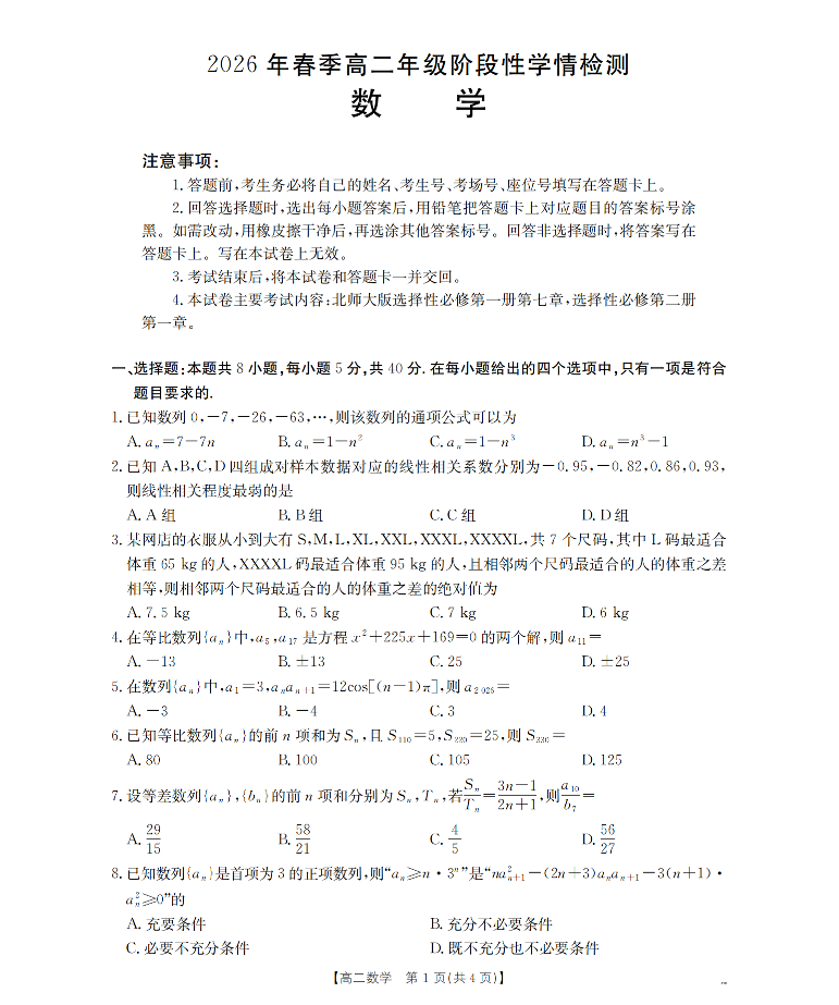 河南省南阳市南阳区域2026年春季高二年级阶段性学情检测 数学.pdf