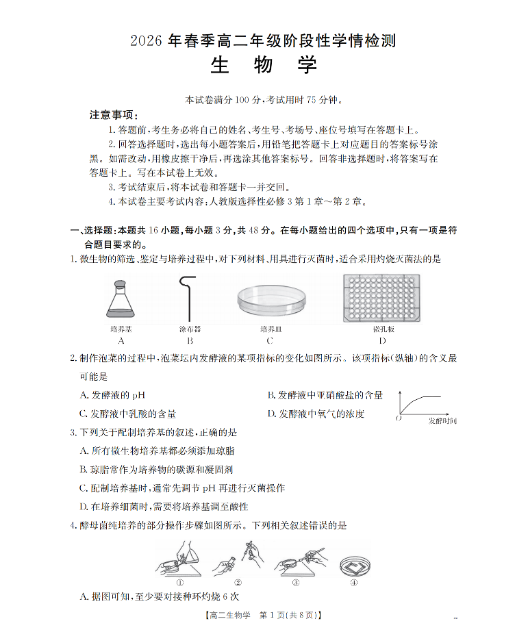 河南省南阳市南阳区域2026年春季高二年级阶段性学情检测 生物.pdf
