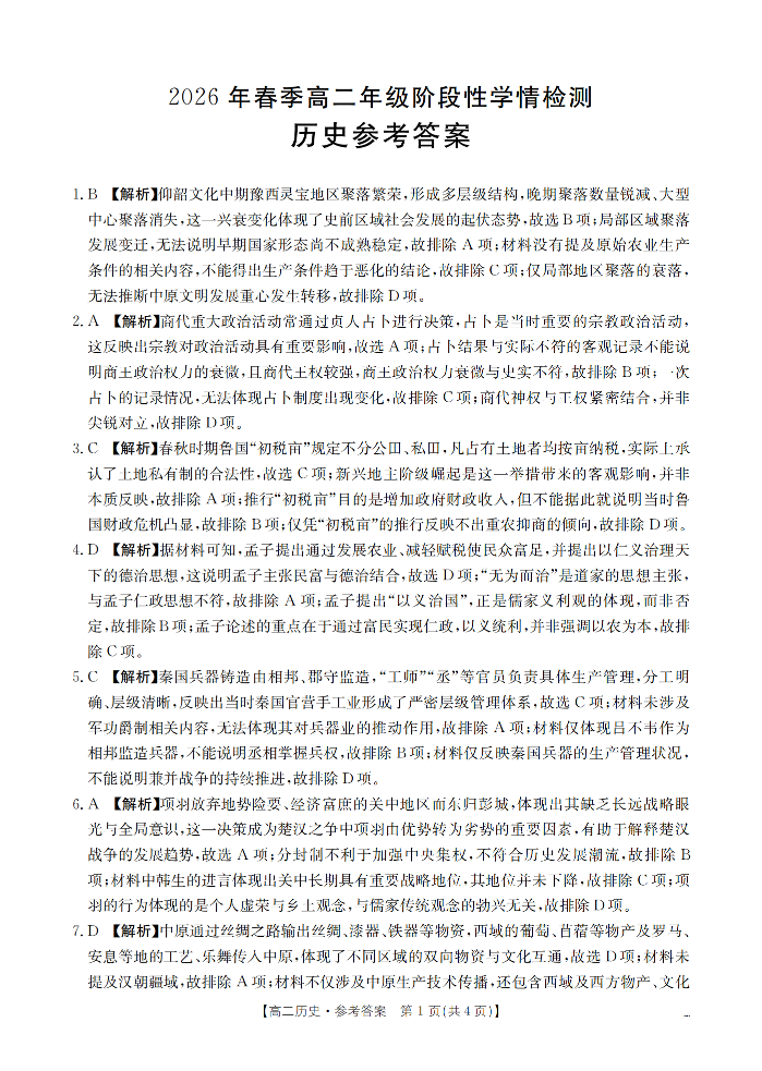 河南省南阳市南阳区域2026年春季高二年级阶段性学情检测 历史答案.pdf