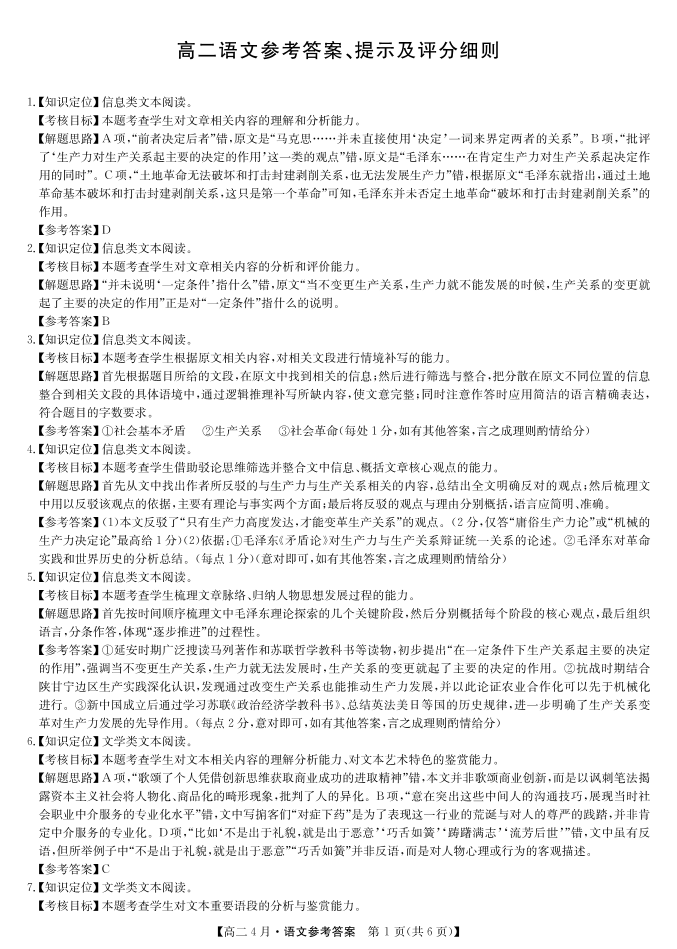 安徽省县中联盟2027届高二年级下学期4月联考 语文答案.pdf