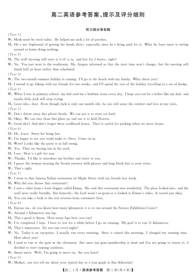 安徽省县中联盟2027届高二年级下学期4月联考 英语答案.pdf