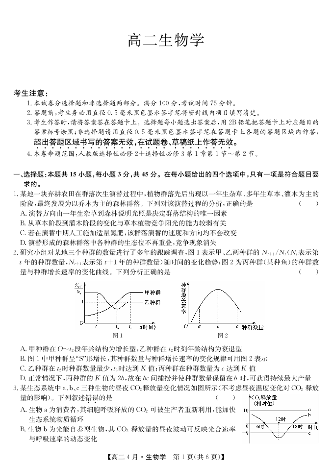 安徽省县中联盟2027届高二年级下学期4月联考 生物.pdf
