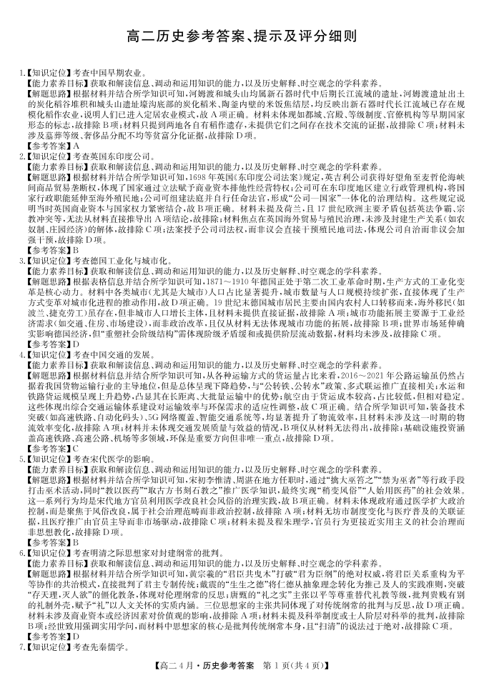 安徽省县中联盟2027届高二年级下学期4月联考 历史答案.pdf