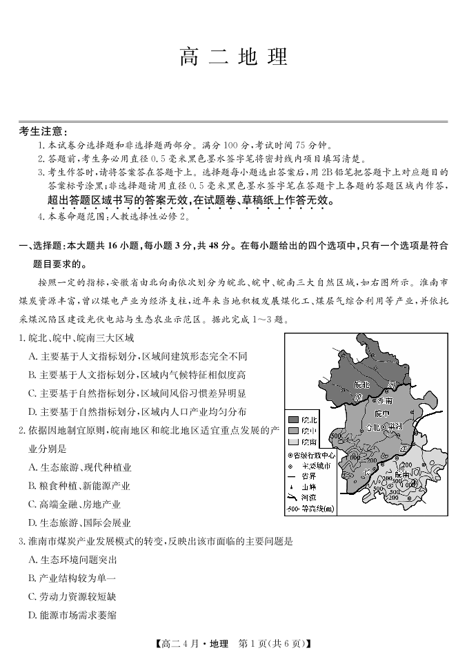 安徽省县中联盟2027届高二年级下学期4月联考 地理.pdf