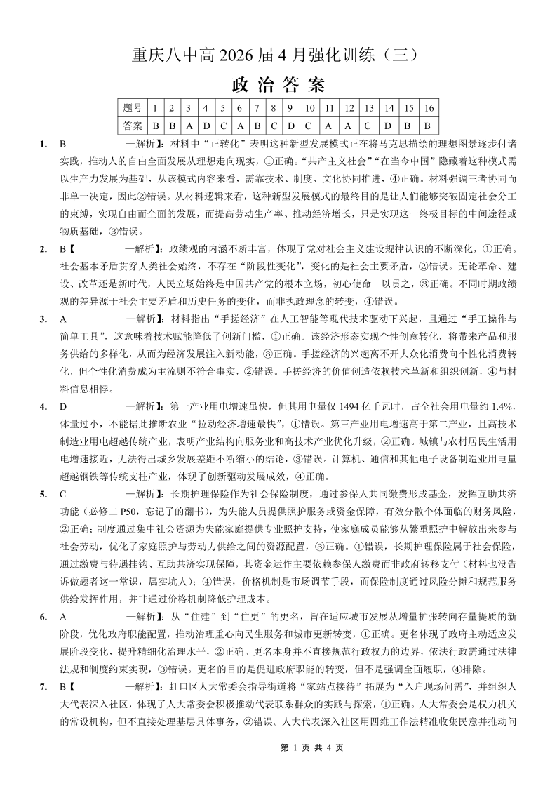 重庆八中高2026届4月强化训练(三)政治答案.pdf