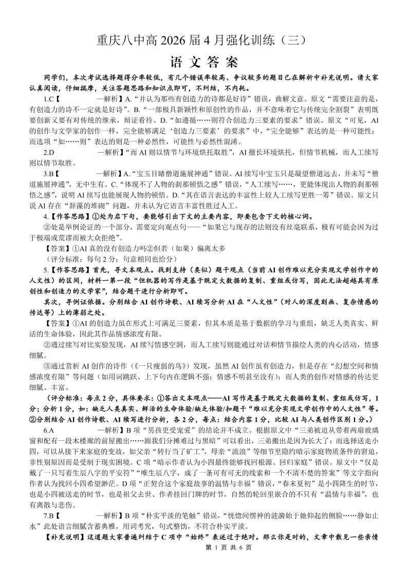 重庆八中高2026届4月强化训练(三)语文答案.pdf