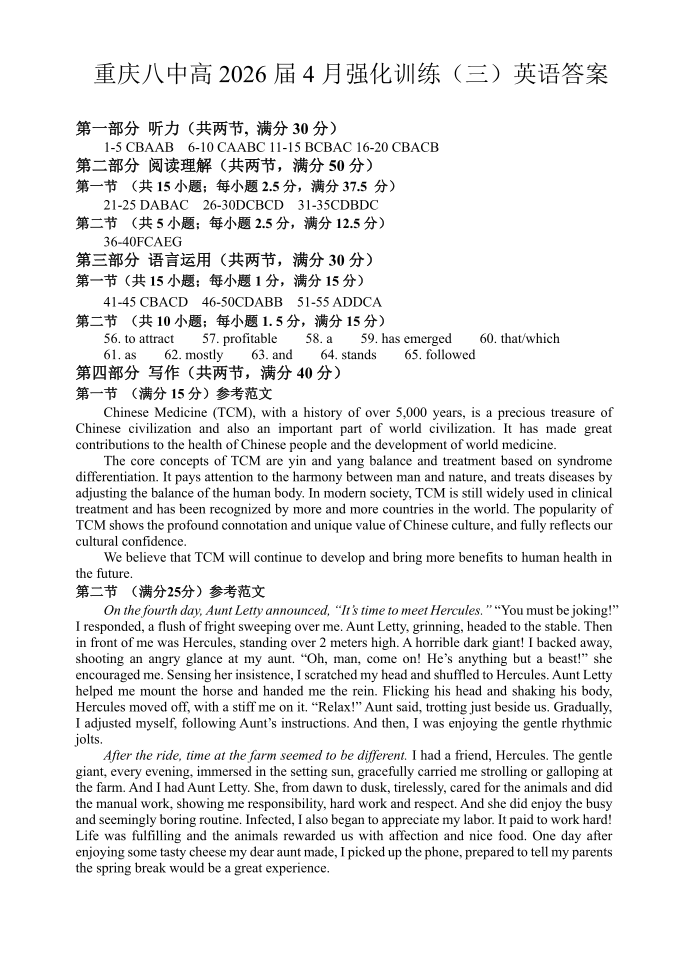 重庆八中高2026届4月强化训练(三)英语答案.pdf