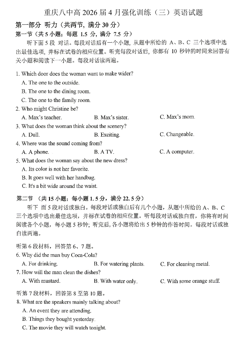 重庆八中高2026届4月强化训练(三)英语.pdf