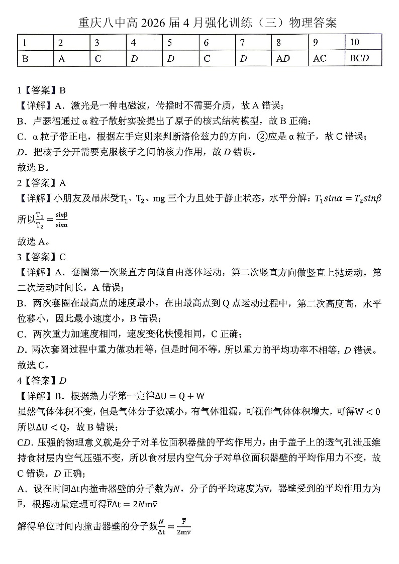 重庆八中高2026届4月强化训练(三)物理答案.pdf