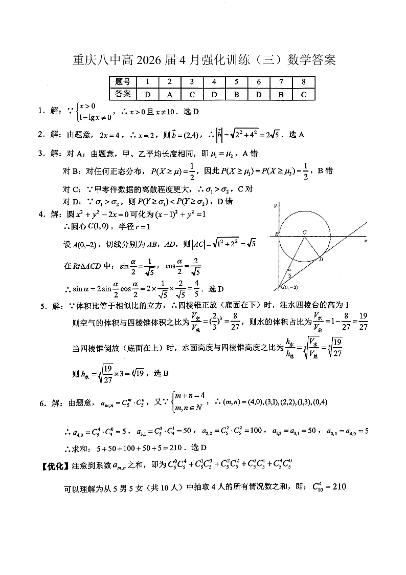 重庆八中高2026届4月强化训练(三)数学答案.pdf