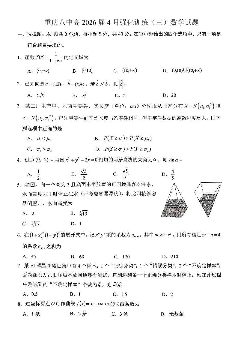 重庆八中高2026届4月强化训练(三)数学.pdf