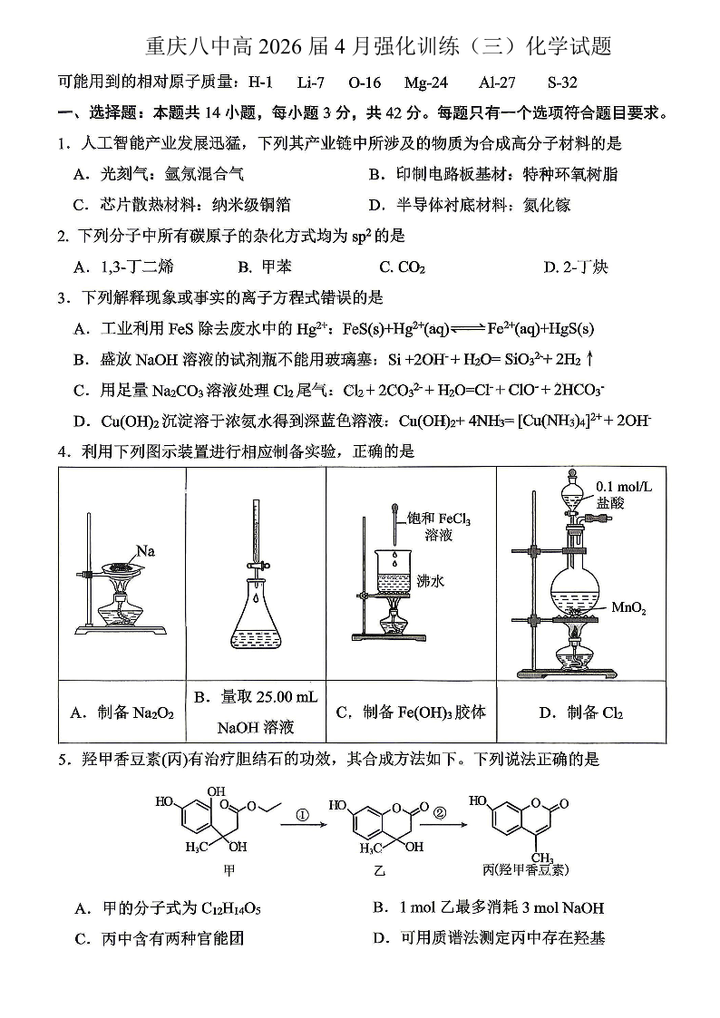重庆八中高2026届4月强化训练(三)化学.pdf