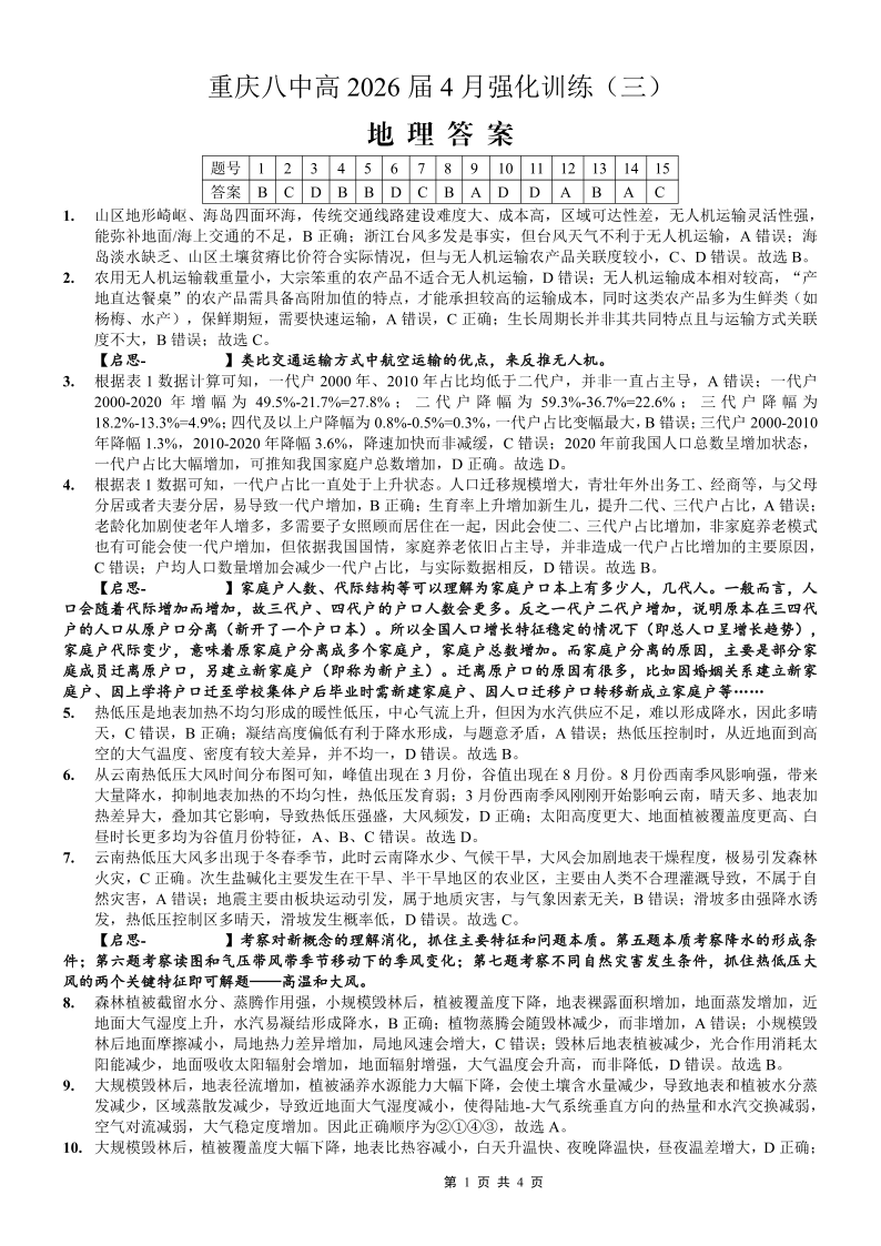 重庆八中高2026届4月强化训练(三)地理答案.pdf