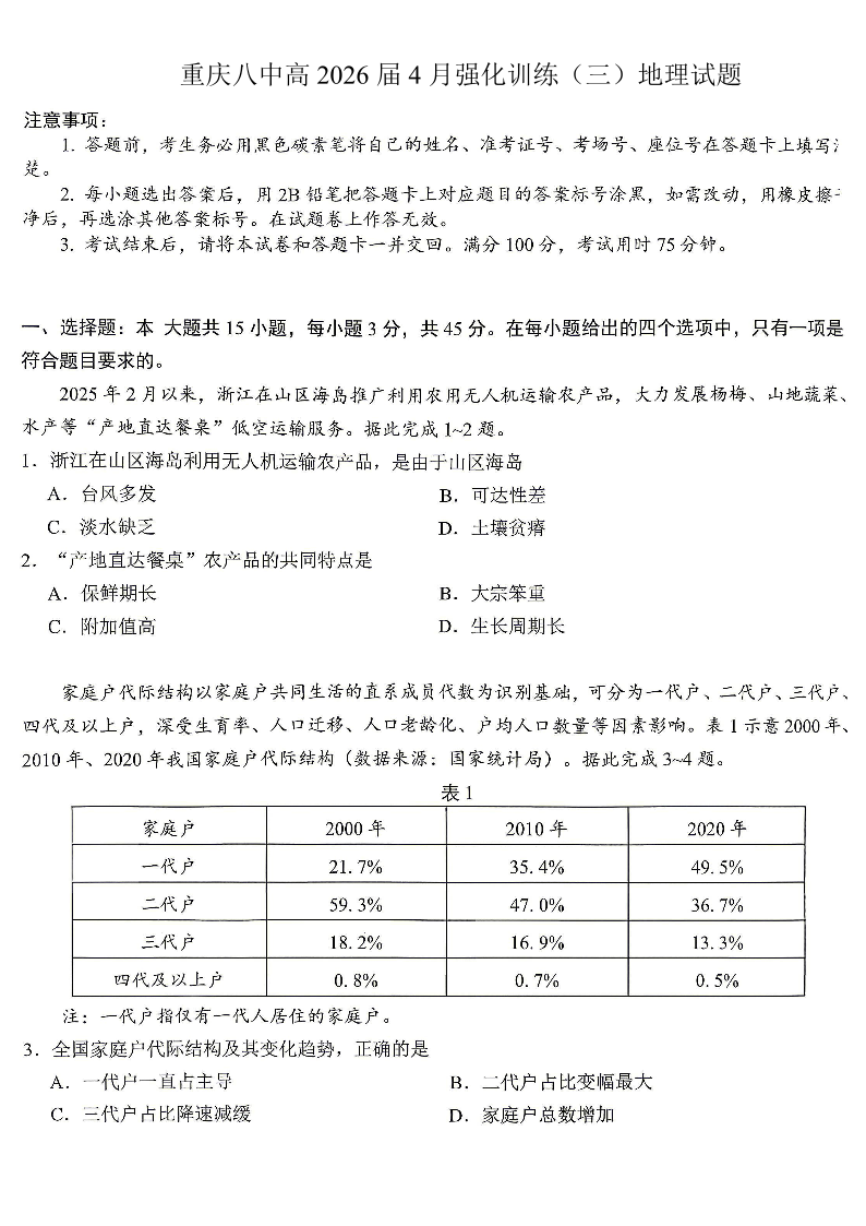 重庆八中高2026届4月强化训练(三)地理.pdf