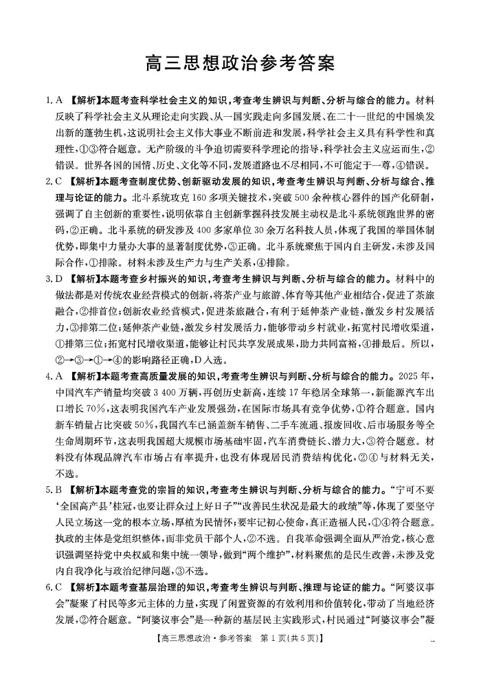 云南省2026届高三下学期4月联考 政治答案.pdf