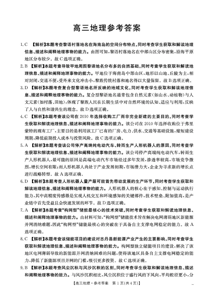 云南省2026届高三下学期4月联考 地理答案.pdf