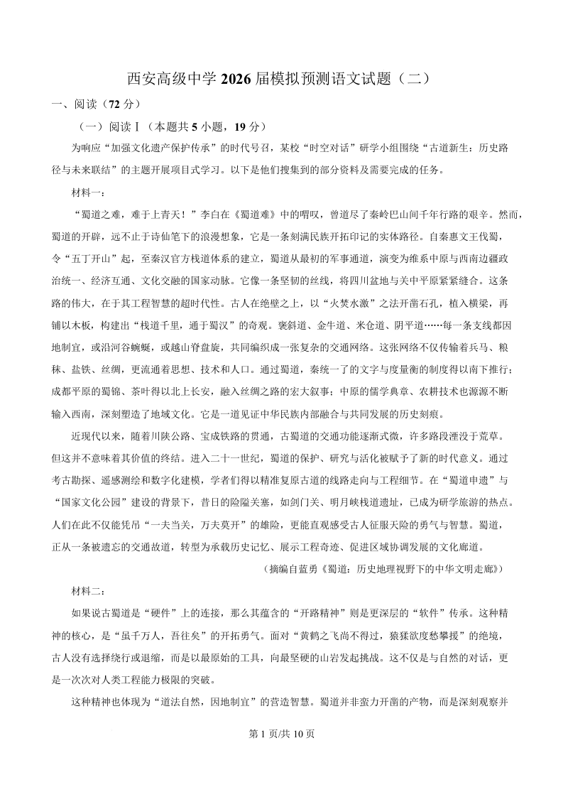 陕西省西安高级中学2026届高三下学期模拟预测(二)语文.docx