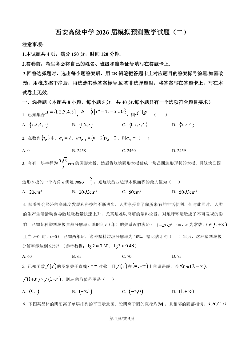 陕西省西安高级中学2026届高三下学期模拟预测(二)数学.docx