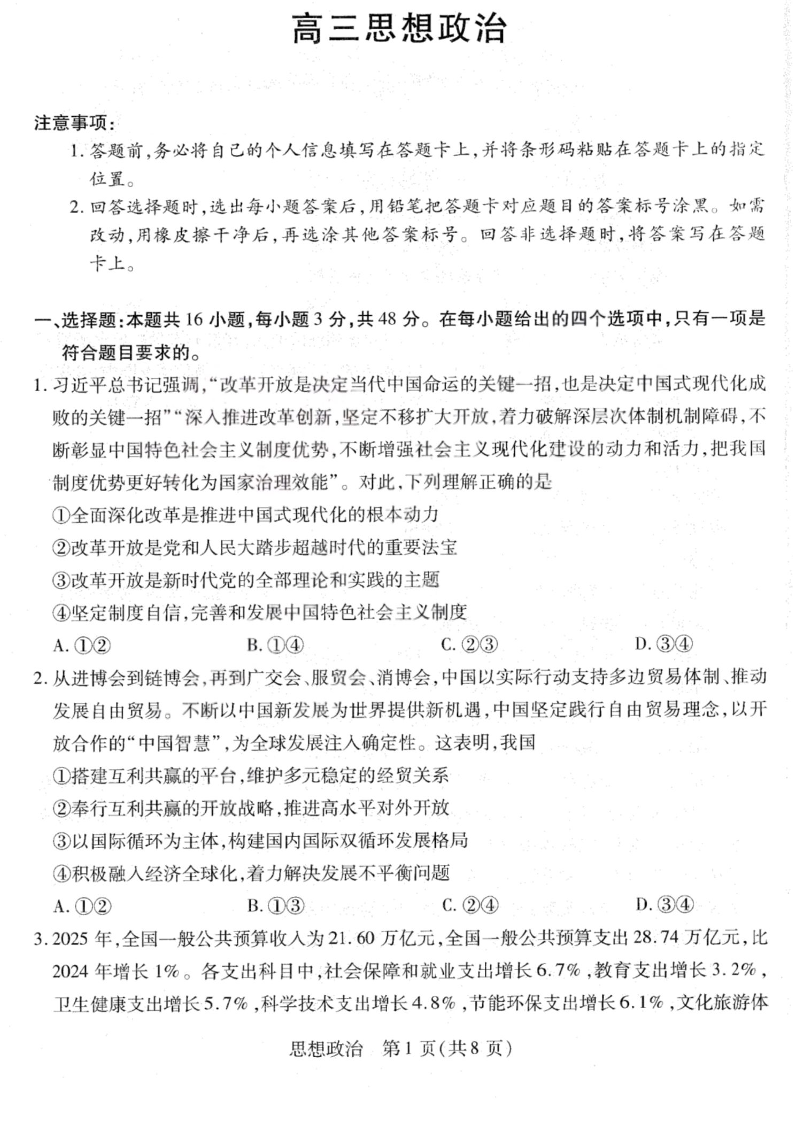 山西、陕西天一大联考2026届高三4月23-24联考 政治试题(含答案).pdf