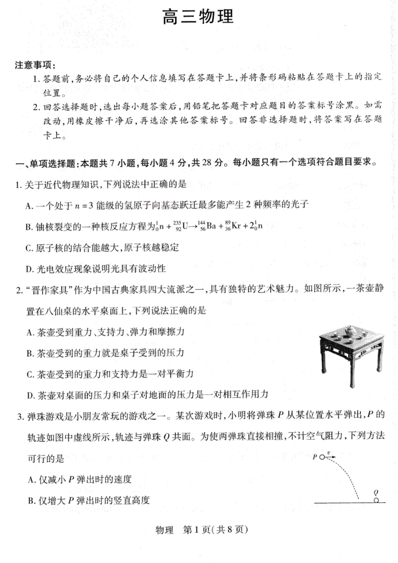 山西、陕西天一大联考2026届高三4月23-24联考 物理试题(含答案).pdf