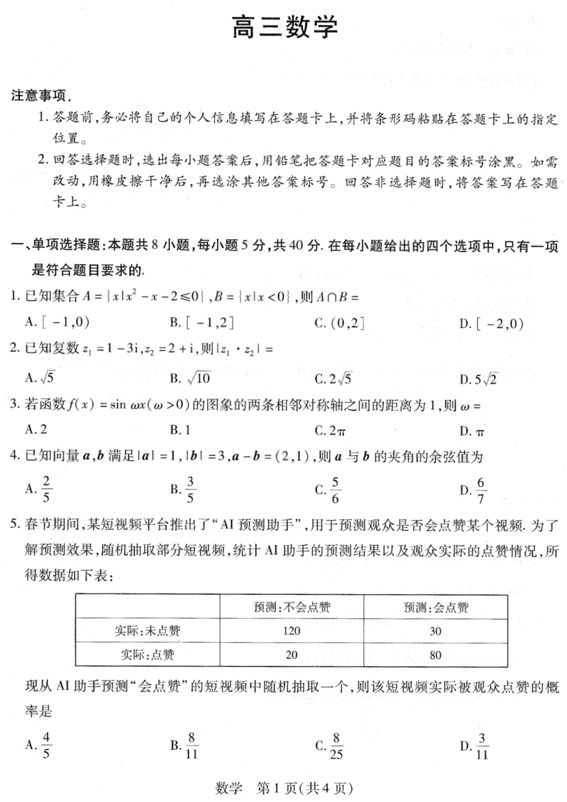 山西、陕西天一大联考2026届高三4月23-24联考 数学试题(含答案).pdf