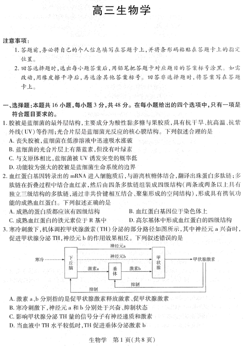 山西、陕西天一大联考2026届高三4月23-24联考 生物试题(含答案).pdf