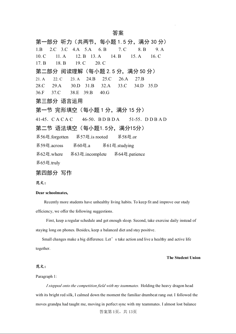 宁夏吴忠市青铜峡市第一中学2026届高三下学期第二次模拟考试 英语答案.docx