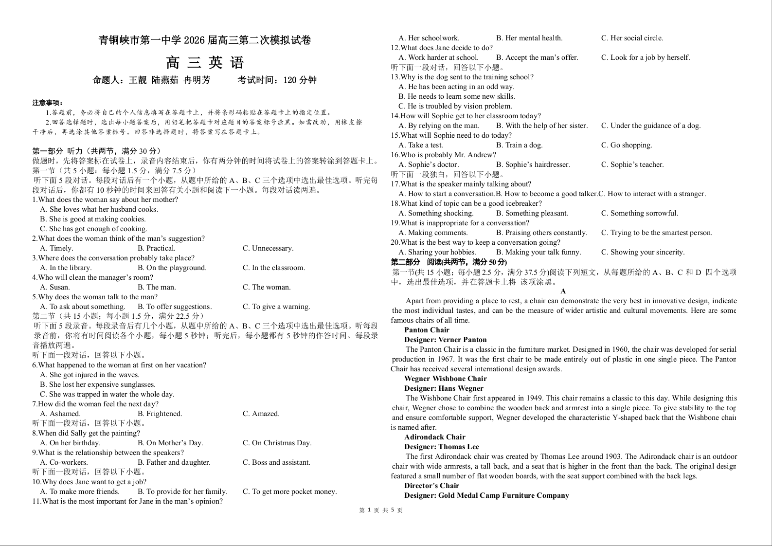 宁夏吴忠市青铜峡市第一中学2026届高三下学期第二次模拟考试 英语.docx