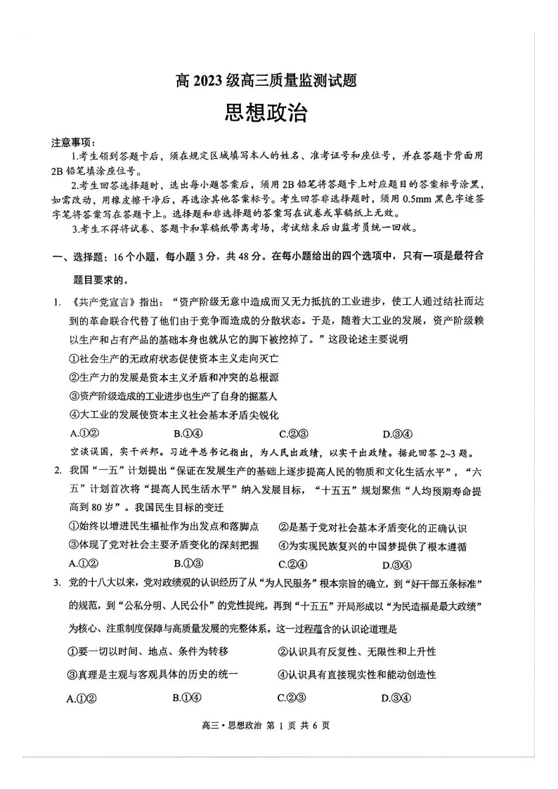 泸州市高2023级高三质量监测试题 政治.pdf