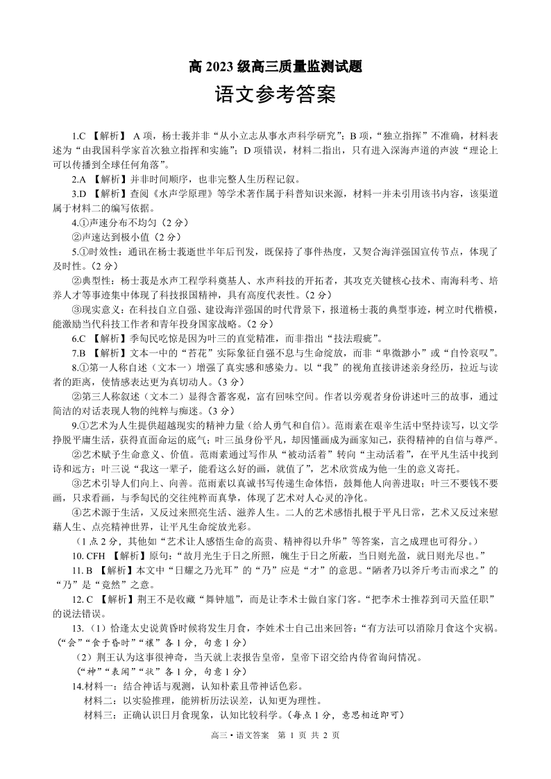 泸州市高2023级高三质量监测试题 语文答案.pdf