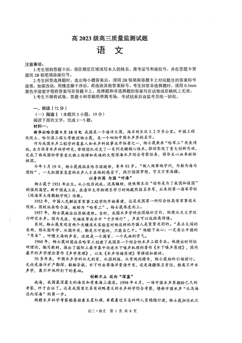 泸州市高2023级高三质量监测试题 语文.pdf