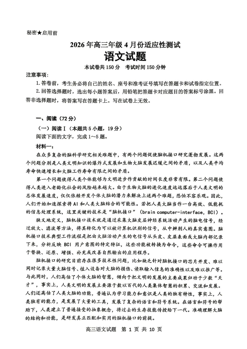 东营市2026年高三年级4月份适应性测试 语文.pdf