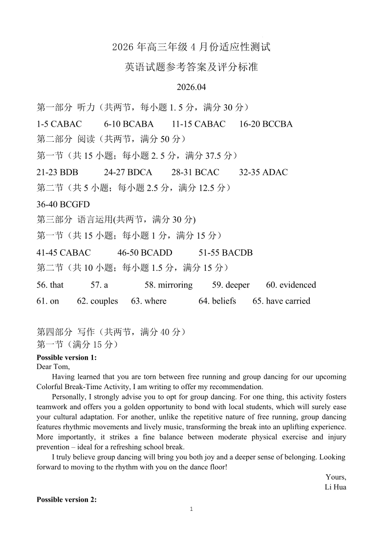 东营市2026年高三年级4月份适应性测试 英语答案.pdf