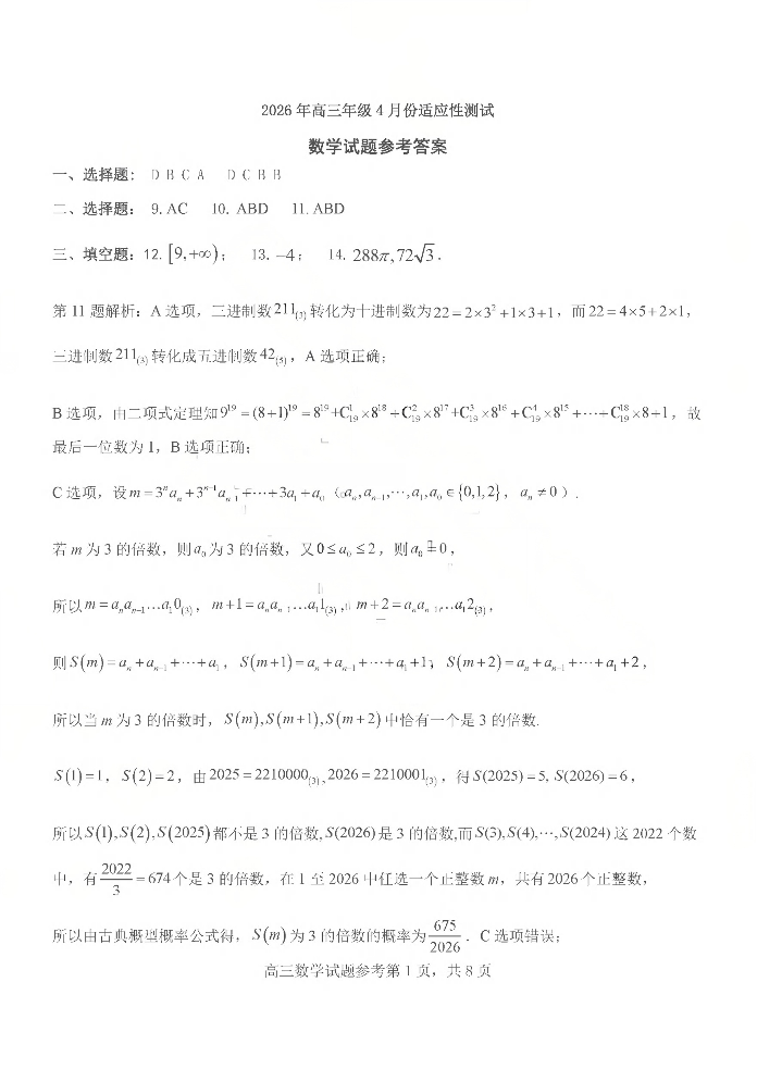 东营市2026年高三年级4月份适应性测试 数学答案.pdf