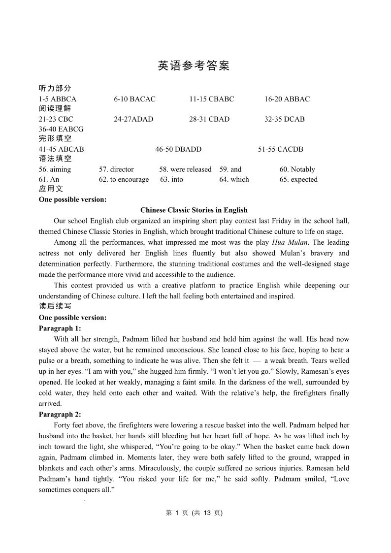 孝感市2026届高三年级第二次统一考试 英语答案.pdf