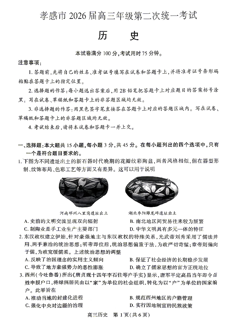 孝感市2026届高三年级第二次统一考试 历史.pdf